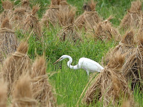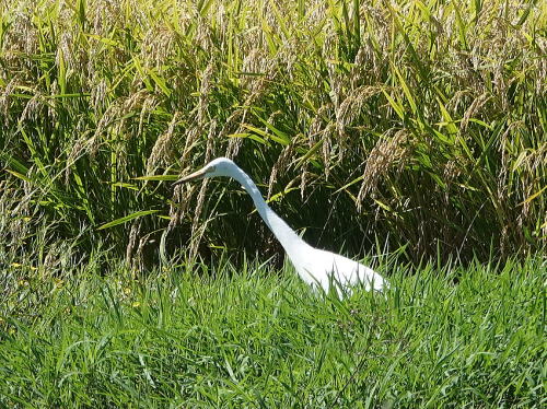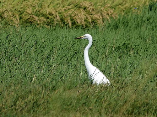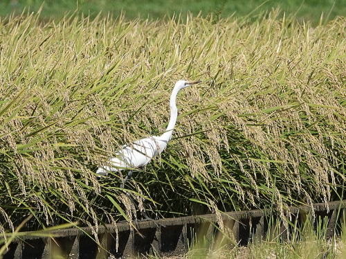 | ダイサギ[9月18日] バッタを獲るのかなと思いましたが、カエルを獲っていました。 | チュウサギ[9月18日] 1羽だけでした。 | |