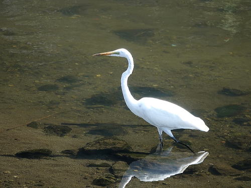 | ダイサギ[9月1日] やっと見かけるようになりました。 | チュウサギ[9月1日] これから数も増えてくるでしょう。 | |