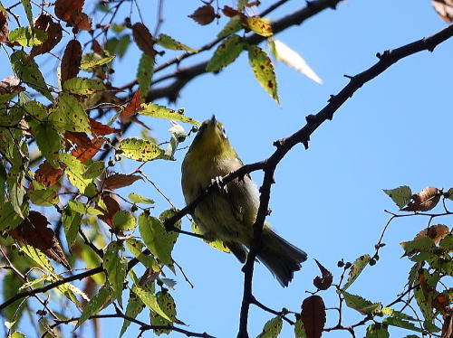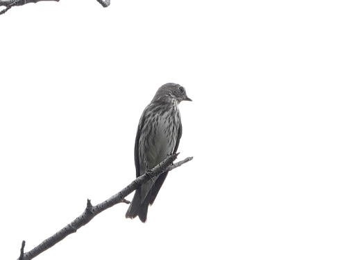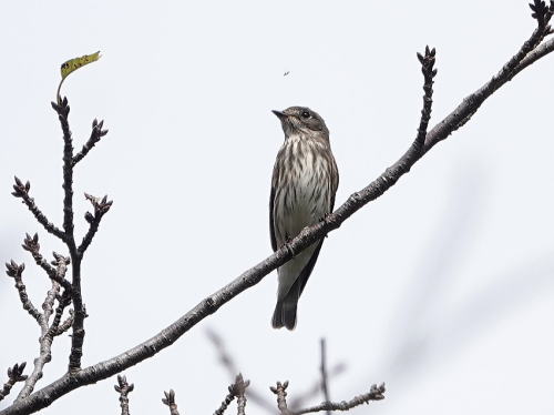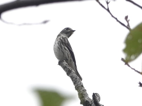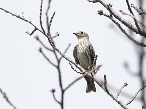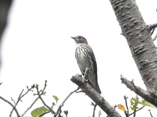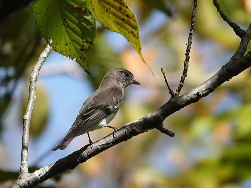 | エゾビタキ[9月29日] 数羽の群れで飛び交っていました。 | エゾビタキ[9月29日] 桜の木の高い所に止まります。 | |