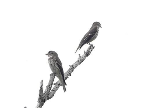 | エゾビタキ[9月29日] 珍しく2羽が、好きな場所は同じです。 | エゾビタキ[9月29日] 残念、コサメビタキがいませんでした。 | |