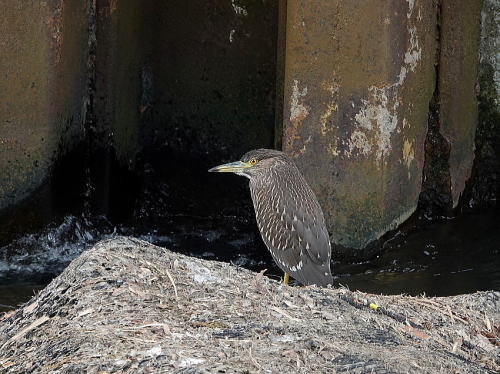 | ヒドリガモ、カルガモ[9月29日] やっと会えました、カルガモの群れに居ました。 | ゴイサギ[9月29日] 今日も居ました。 | |