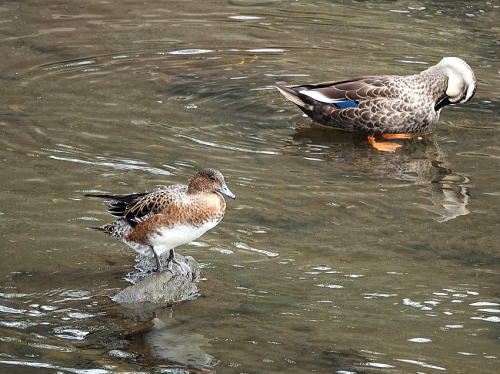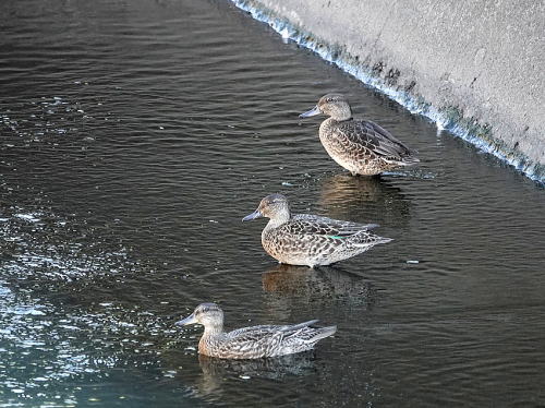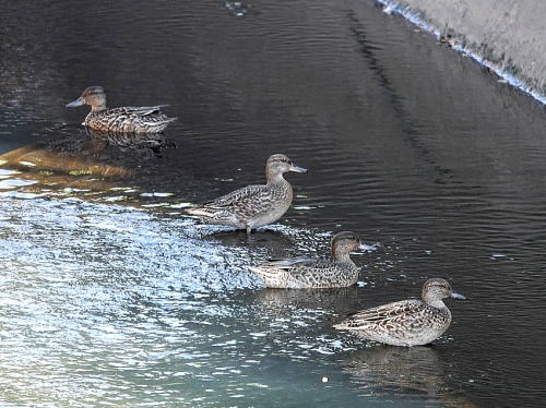 | コガモ[9月19日] コガモが居たよと教えて頂きました。 | コガモ[9月19日] 着いたばかりのようです。10羽いました。 | |