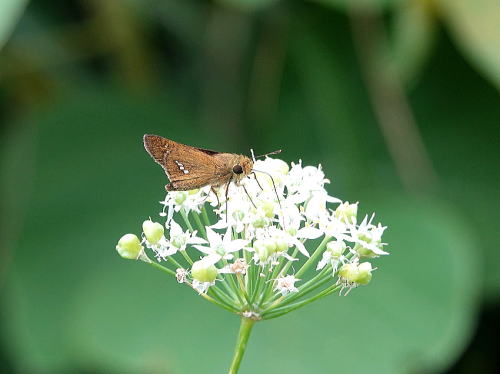 | サトキマダラヒカゲ[9月21日] 翅がだいぶ傷んでいます。 | イチモンジセセリ[9月21日] 長い間吸蜜していました。 | |