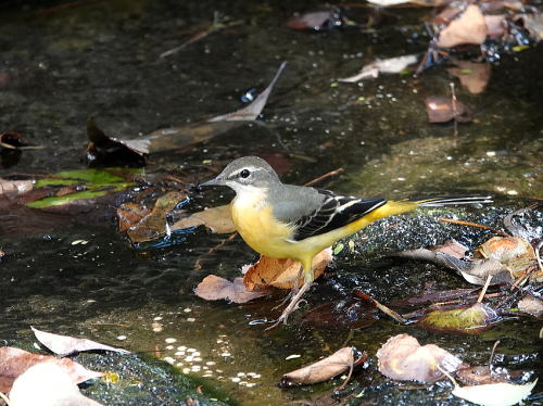 | エナガ[9月12日] 大きな群れがやって来ました。 | キセキレイ[9月12日] 海寄りの公園の小さな水路にいました。 | |