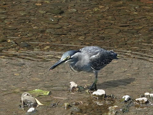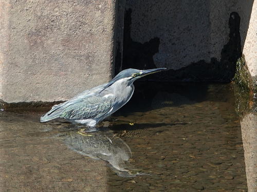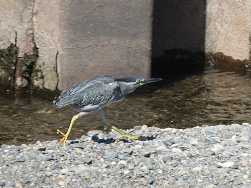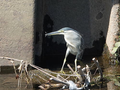 | ササゴイ[9月13日] 上流へと歩いて行きました。 | ササゴイ[9月13日] 魚でもない小枝を獲って、何でしょう? | |