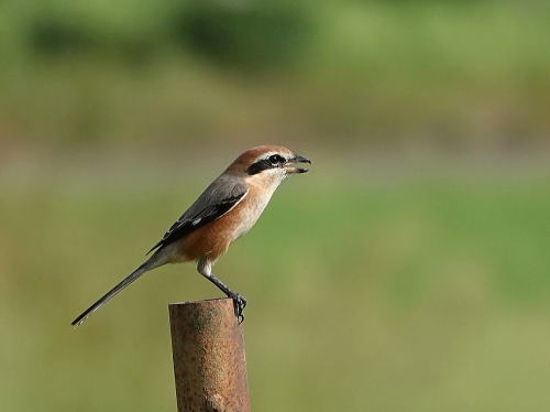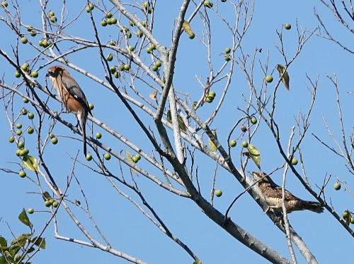 | チョウゲンボウ[10月1日] 久しぶりです。バッタ類を狙ってやって来たのかも。 | モズ[10月1日] ここでもキーキー鳴いています。 | |