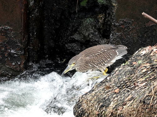 | ゴイサギ[10月5日] 急流を飛び越えていく魚を狙っているようです。 | 案山子[10月3日] 今年も楽しい案山子が沢山ありました。 | |