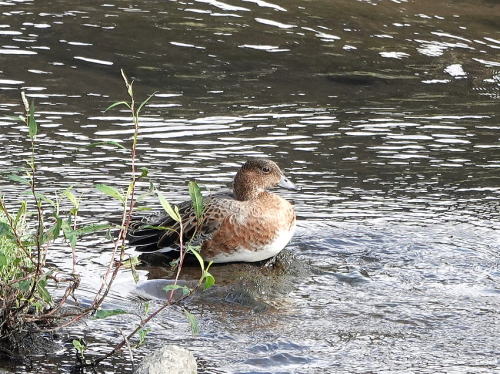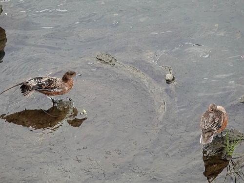 | シマアジ♀[10月10日] カルガモと一緒にいました。 | セグロセキレイ[10月7日] 綺麗な声で鳴いていました。 | |
