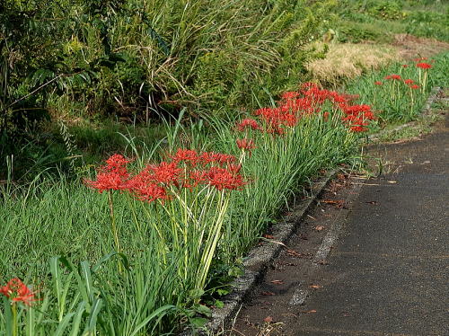| ヒドリガモ、カルガモ[10月3日] 仲良く泳いでいました。 | ヒガンバナ[10月1日] 次々に咲いてきます。まだまだです。 | |