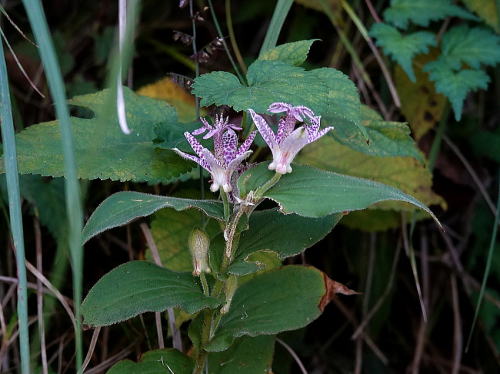 | ホトトギス[10月12日] 白花が咲いていました。 | ホトトギス[10月12日] 普通のも咲いていました。 | |
