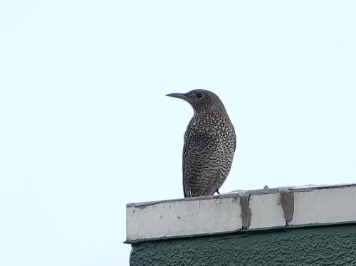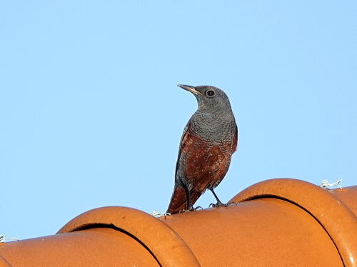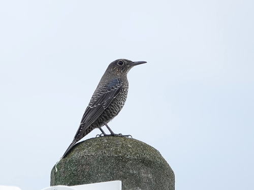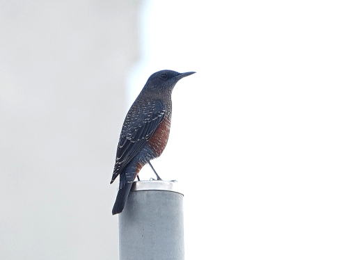 | イソヒヨドリ[10月21日] 時々見かけますがさっと居なくなります。 | イソヒヨドリ[10月21日] 短い時間ですが綺麗な声で鳴いていました。 | |