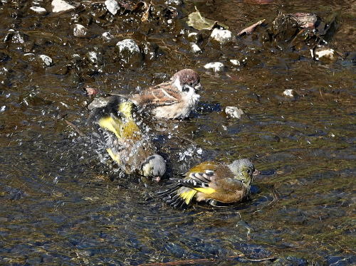 | カワラヒワ、スズメ[10月24日] 仲間に入れてとスズメがやって来ました。 | コスモス[10月24日] 今年も満開になりました。 | |