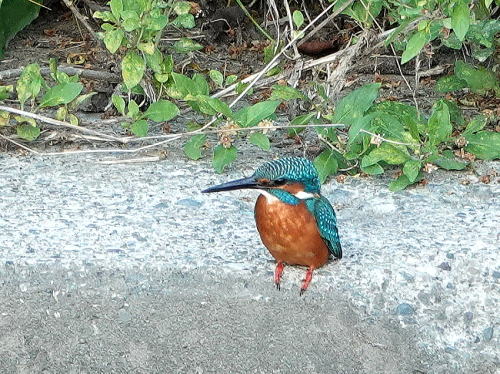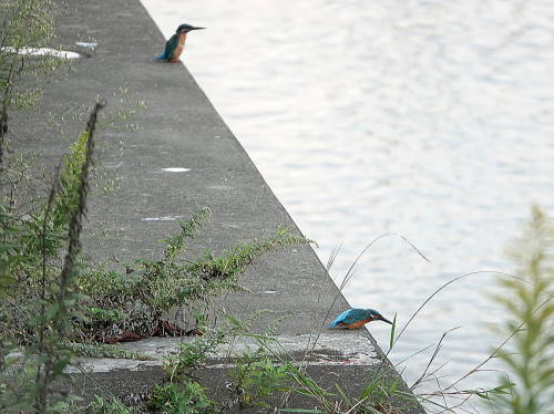 | カワセミ[10月5日] 今日は3羽見かけました。 | イソヒヨドリ[10月5日] ちらっと見かけたり、声は聞いていたのですがやっと撮れました。 | |
