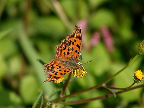 | ダイサギ[10月18日] 周りを気にせず餌獲りに夢中でした。 | キタテハ[10月18日] 花が咲いている所でよく見かけます。 | |
