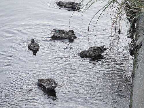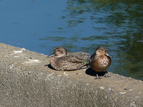 | カワセミ[10月12日] だいぶ離れていますが2羽が餌取りをしていました。 | コガモ[10月12日] しばらく見かけませんでした。 | |