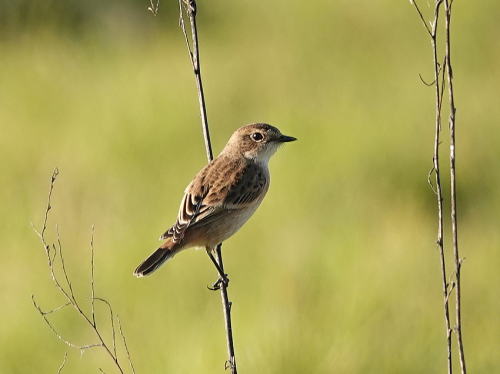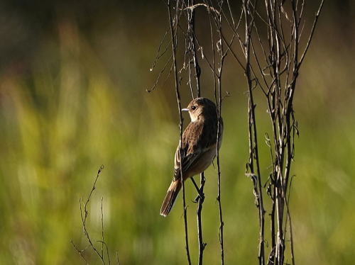 | ノビタキ[10月12日] 夕方、1羽居ました。 | ノビタキ[10月12日] 1羽だけ残ったのか、新しく来たのか分かりません。 | |