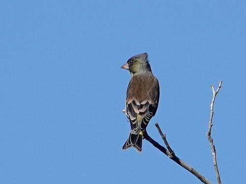 | ジョウビタキ[10月26日] 梅林に落ち着いてくれたようです。 | オオカワラヒワ[10月26日] 数羽の群れでした。 | |