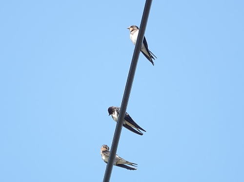 | ホオジロ[10月7日] 見かけるのは暫くぶりです。 | ツバメ[10月6日] 田んぼの上を群れで飛び回り、たまに電線で休憩します。 | |