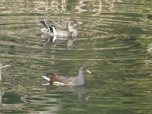 | バン、コガモ[11月20日] バンも川ではまだ見ていません。 | マガモ[11月20日] マガモらしくなってきました。 | |