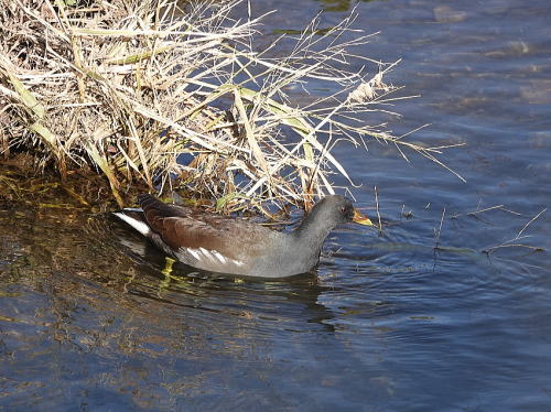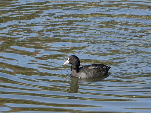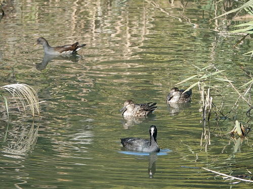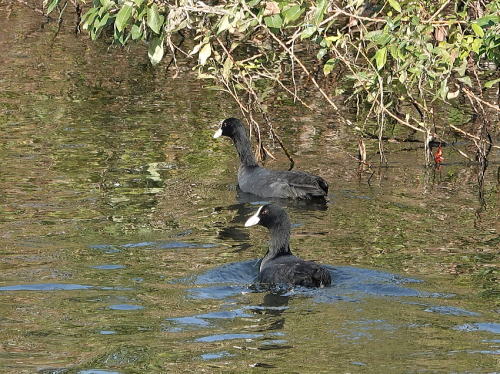 | オオバン、コガモ、バン[11月20日] 川にはカモ類が全く居ません。 | オオバン[11月20日] いつもなら川にも来ているはずです。 | |