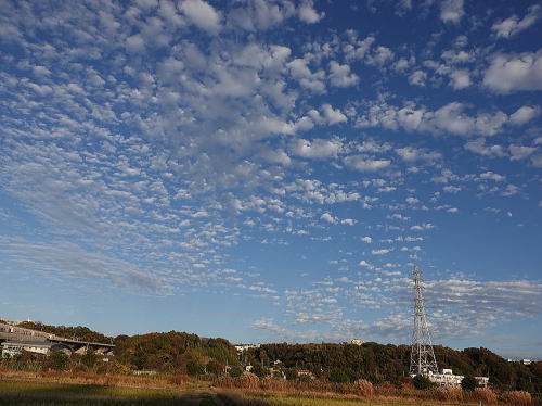 | コサギ[11月23日] 一瞬で大きな魚を獲り、一息に飲み込みました。 | いわし雲[11月23日] いわし雲でしょうか、空一面に広がっていました。 | |