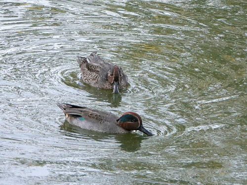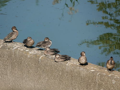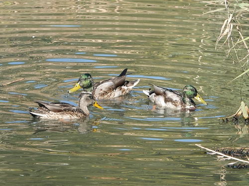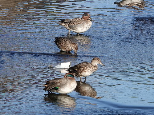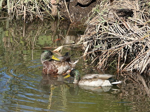 | コガモ[11月22日] 25羽ほどいました。 | マガモ[11月22日] 3羽とも♂のようです。 | |