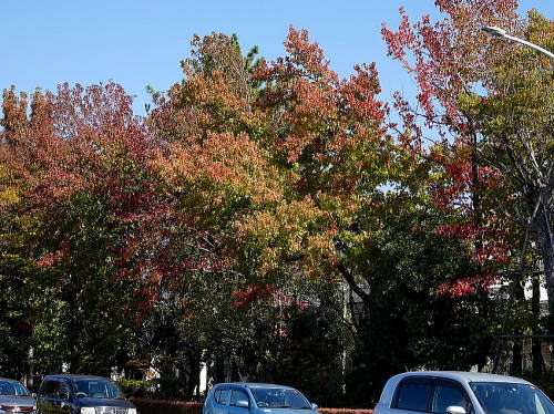 | コガモ[11月3日] 周りも含めて21羽いました。 | 紅葉[11月3日] 街路樹の紅葉が始まりました。 | |