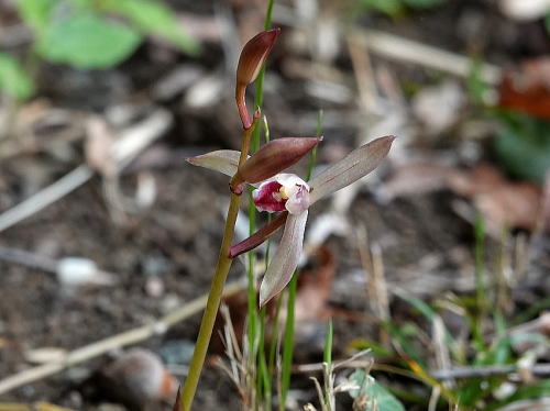 | マヤラン[11月5日] 一株だけ開花していました。 | リンドウ[11月5日] 一輪だけ開花と言えるかどうか、あと4、5日で満開でしょう。 | |