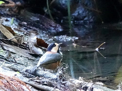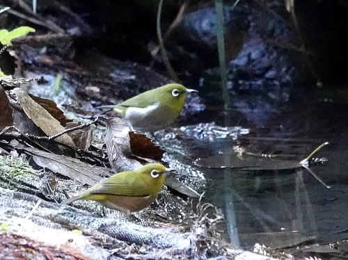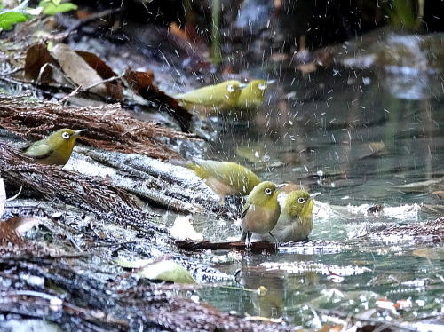| ヤマガラ[11月22日] 水浴びにやって来ました。 | メジロ[11月22日] 続けてメジロが水浴びにやって来ました。 | |