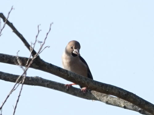 | メジロ[11月27日] 今日の水浴び場は賑わっていました。 | シメ[11月27日] 遠くて高い木に1羽だけいました。 | |