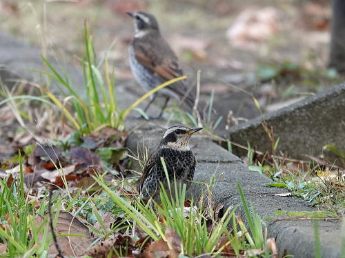 | ツグミ[11月23日] 来たとの便りは聞くのですが、やっと会えました。 | ツグミ[11月23日] 直ぐ近くにもう1羽居ました。 | |
