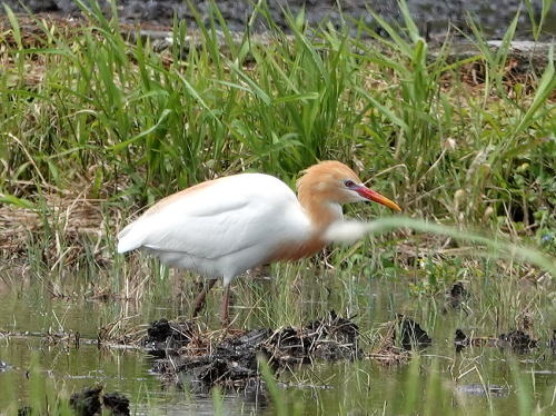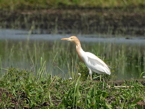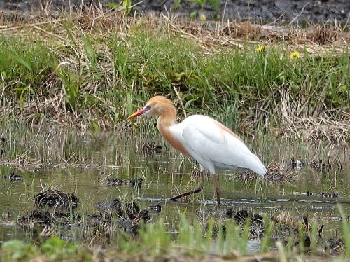 | チョウゲンボウ[5月14日] 何度か場所を変えホバリングしていました。 | アマサギ[5月14日] 1羽だけですが立ち寄ってくれました。綺麗な夏羽になっています。 | |