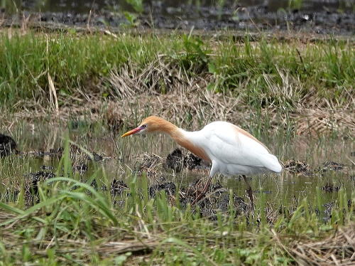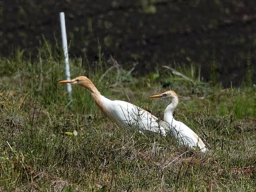 | アマサギ[5月15日] もう1羽居ました。 | アマサギ[5月15日] 餌を探しながら2羽が並びました。 | |