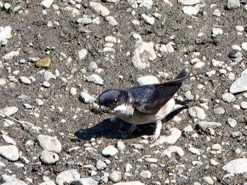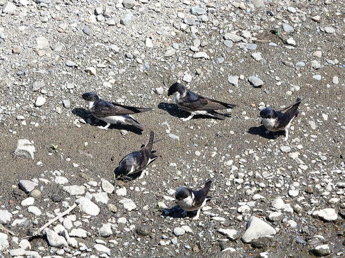 | イワツバメ[5月10日] 巣材の泥を咥えていきます。 | イワツバメ[5月10日] いくつ巣があるのでしょうか。 | |