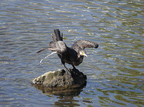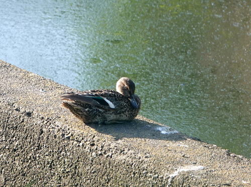 | コガモ[5月17日] 渡り途中の立ち寄りでしょうか。1羽だけいました。 | カワウ[5月16日] あーすっきり。 | |