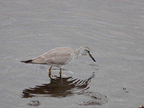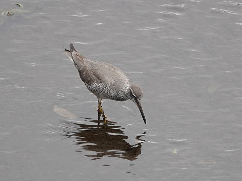 | キアシシギ[5月12日] 居るよと教えていただきました。 | キアシシギ[5月12日] もう1羽居ましたがこちらも採餌に夢中です。 | |