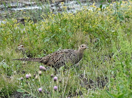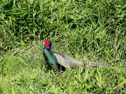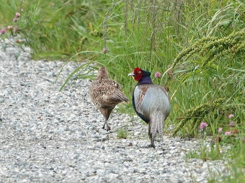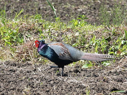 | キアシシギ[5月12日] 何かの拍子に飛びますがまた戻って来ます。 | キジ[5月10日] 田んぼ辺りには3羽の♂が居そうです。 | |