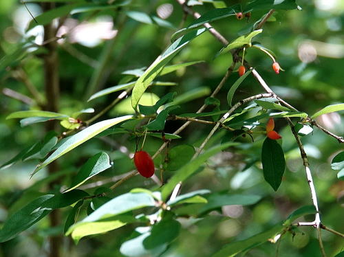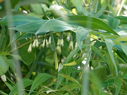 | ナルコユリ[5月15日] 少ないです。他の草に埋もれてしまっています | ウグイスカグラ[5月15日] ヒヨドリに花を食べられたからか実が少ないです。 | |