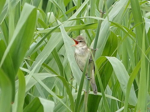 | オオヨシキリ[5月20日] やっと見える所に止まってくれました。 | キジ[5月20日] ♀の採餌のエスコートです。 | |