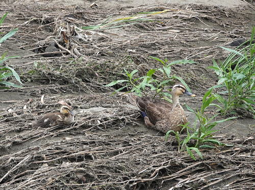 | ダイサギ[6月6日] 獲っていたのはオタマジャクシでした。 | カルガモ[6月6日] 居ないかなと探していました。やっと2羽のヒナ連れを見つけました。 | |