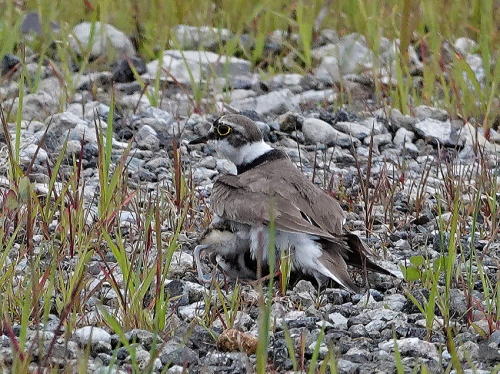 | コチドリ[6月10日] ヒナが何か言っているようです。 | コチドリ[6月10日] お腹の下に潜り込みました。 | |