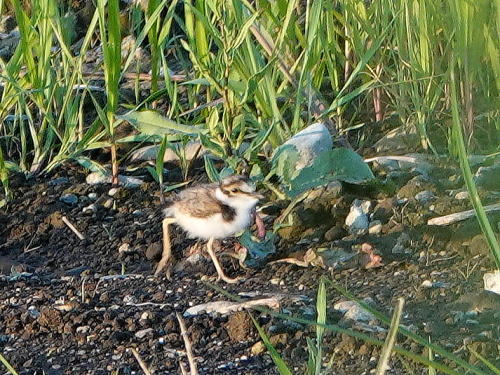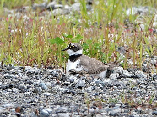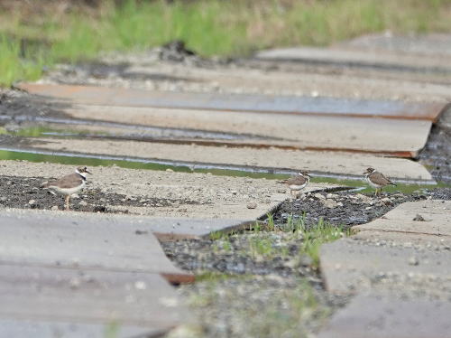 | コチドリ[6月19日] 最近工事が始まったので心配していました。 | コチドリ[6月19日] ヒナは3羽居るのが確認できました。 | |
