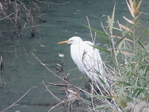 | ダイサギ[12月19日] 大きいなと思ったらダイダイサギでした。冬鳥です。 | ジョウビタキ[12月19日] 昨年もこの場所に長い間居ました。 | |
