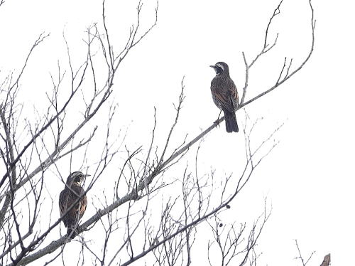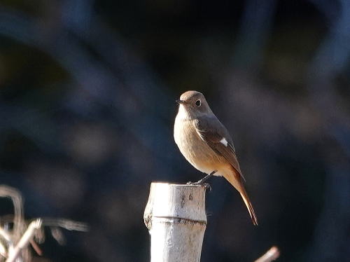 | ルリビタキ[12月11日] 棒杭が好きなようですね。 | ジョウビタキ[12月11日] 声はすれども姿が見えず、高いアンテナの上に居ました。 | |