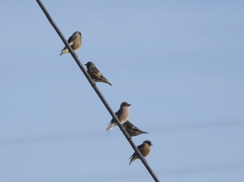 | カワラヒワ[12月25日] 電線に30〜40羽止まっていました。 | ユリカモメ[12月25日] ここでは7羽のみ、分散したのかも。 | |