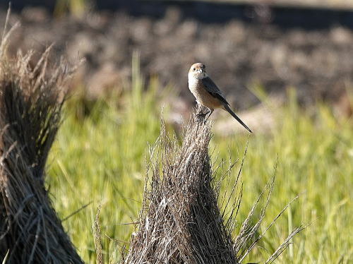 | モズ[12月9日] 藁ボッチの上がお気に入り。 | トビ、アオサギ[12月9日] トビはしきりに鳴いていました。 | |