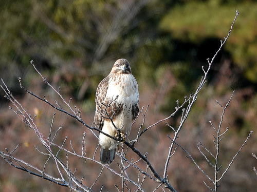 | アオジ[12月28日] ペリットを吐き出しているところです。 | ノスリ[12月28日] やっと定位置が決まったようです。 | |