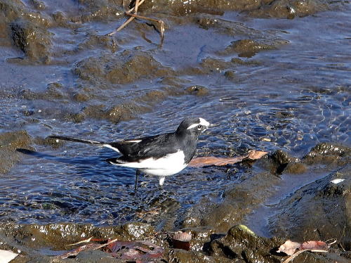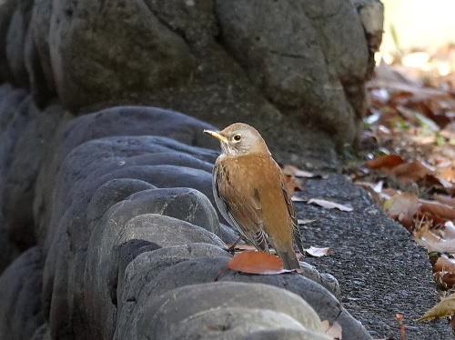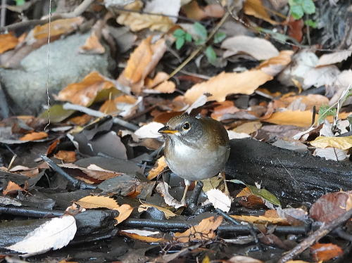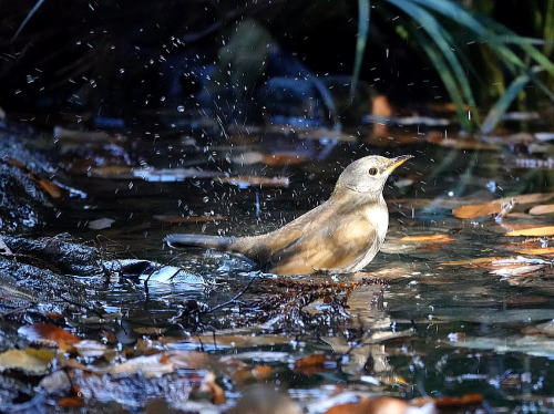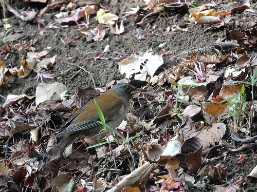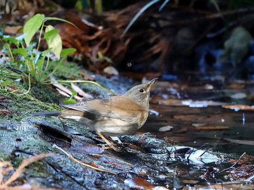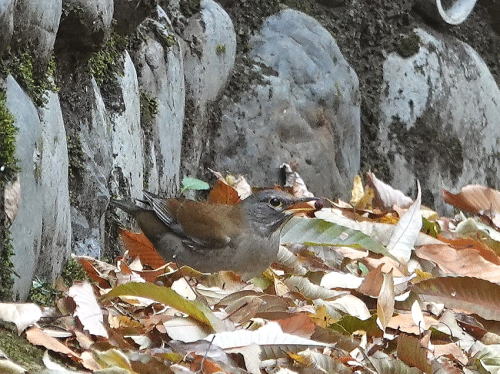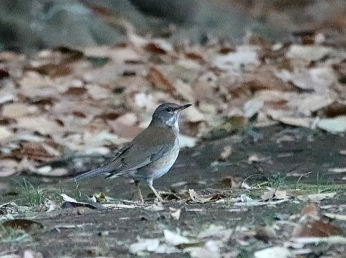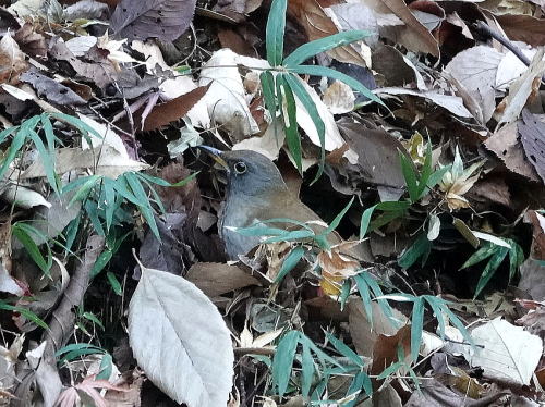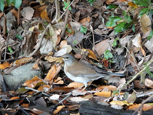 | マガモ[12月30日] 音がして水紋があったので待っていると出て来ました。 | シロハラ[12月28日] 落ち葉を飛ばしていました。 | |