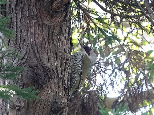 | ノスリ、ハシブトガラス[1月13日] カラスがノスリをしつこく追いかけまわしていました。 | アオゲラ[1月13日] こつこつ音がしていました。暫くぶりです。 | |