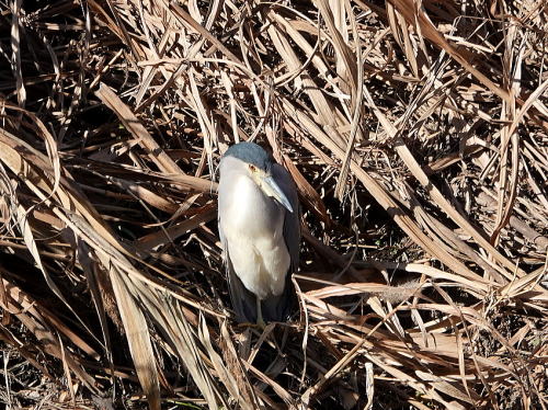 | バン[1月14日] 2羽居ました。 | ゴイサギ[1月14日] 爆睡していましたが一瞬だけ顔を上げました。 | |